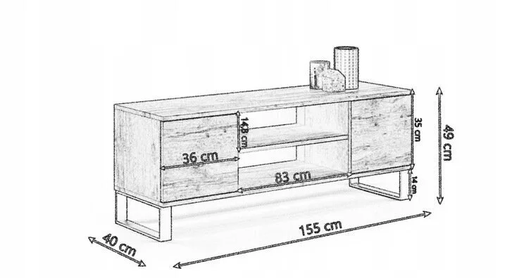 - Mitat: pituus 155 cm, syvyys 40 cm, korkeus 49 cm;