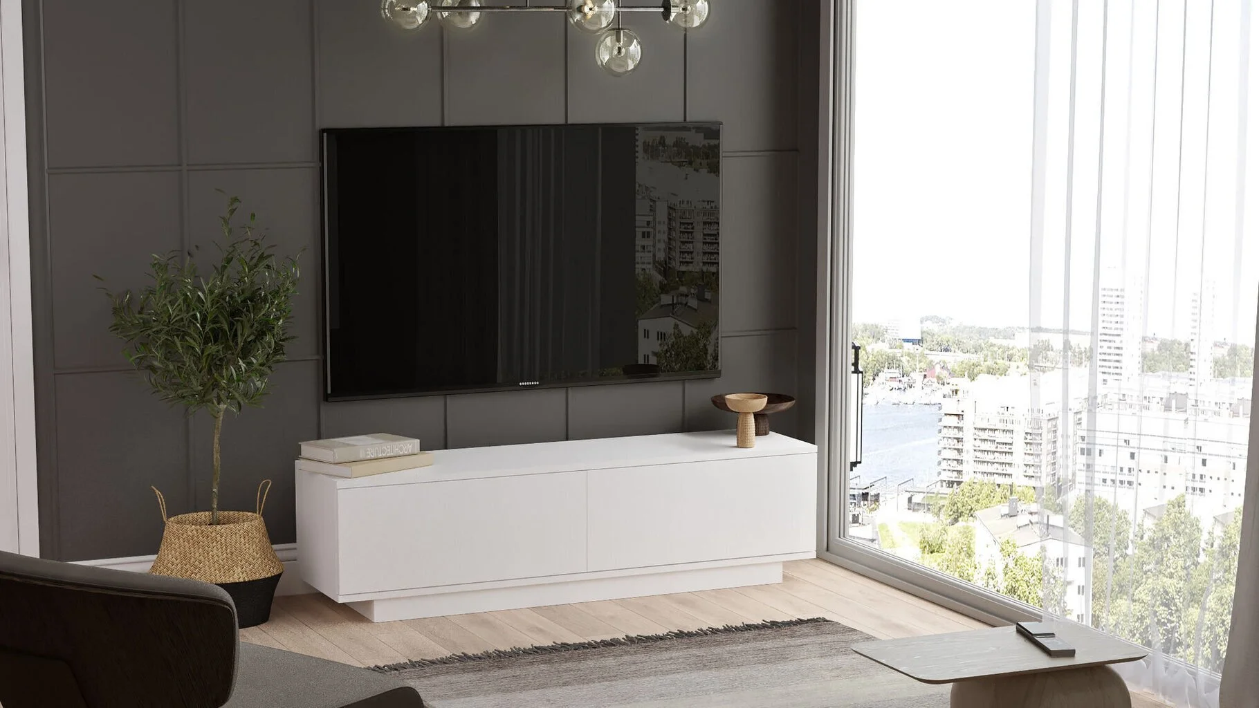 - Moderni TV-pöytä, jossa on 2 ovea;