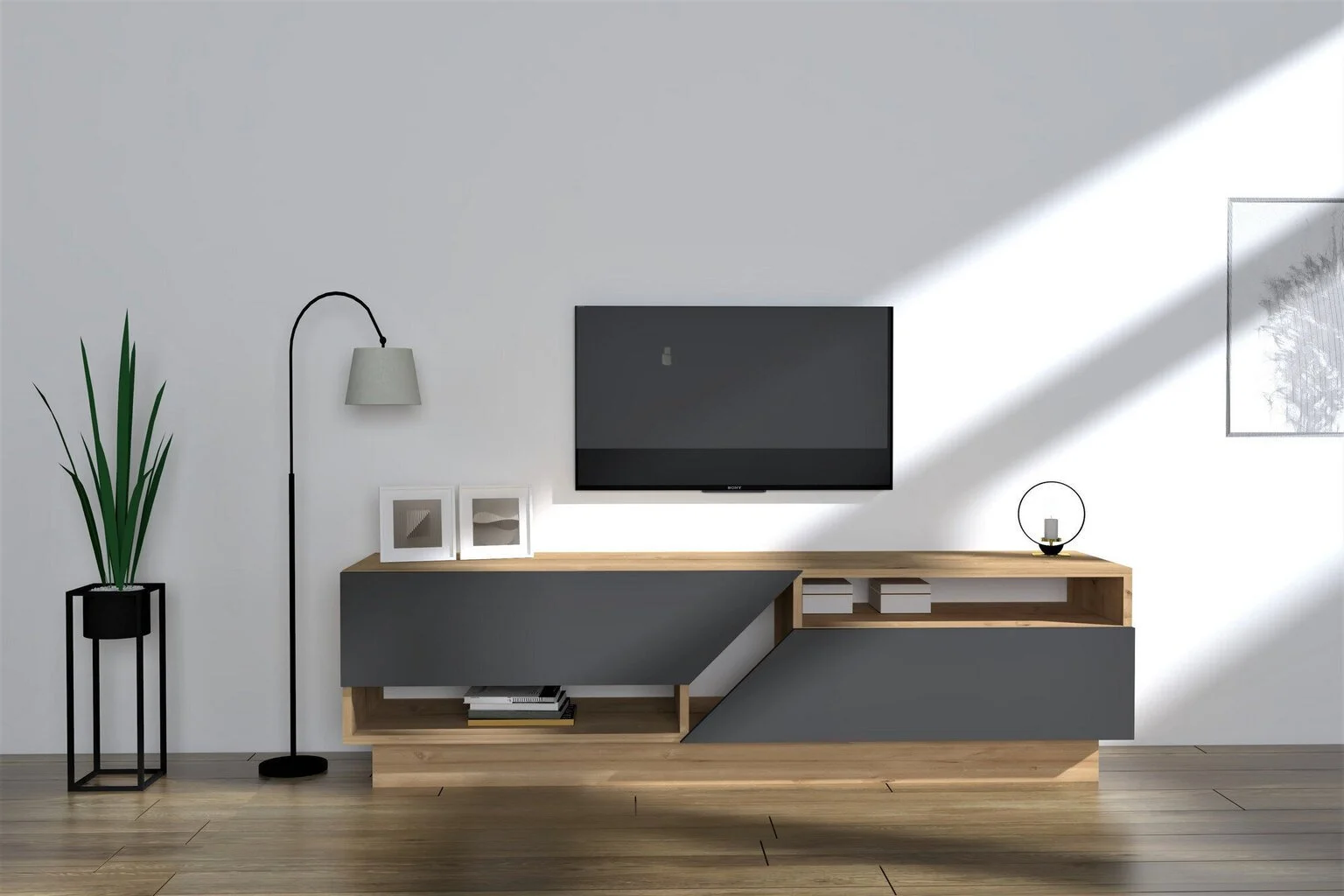 Modernisti muotoiltu TV-pöytä ei vain korista olohuonettasi tai makuuhuonettasi, vaan se sopii myös mihin tahansa kodin sisustukseen.