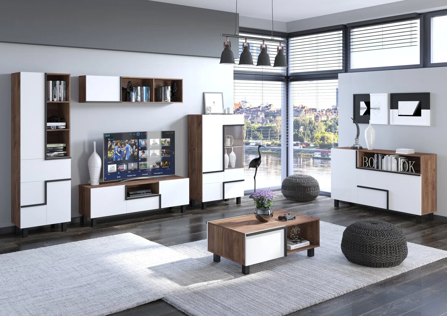 Levyn yläkerros peitetään usein erityisellä kalvolla, joka varmistaa huonekalun lujuuden. Viimeisimpien tuotantoteknologioiden avulla nämä laatat voivat olla kosteudenkestäviä, minkä vuoksi nämä materiaalit eroavat monipuolisuudestaan ja sopivat mihin tahansa huoneeseen. TV-taso Meblocross Lars 09 2D1S, valkoinen/tummanruskea löytää varmasti paikan kodistasi!