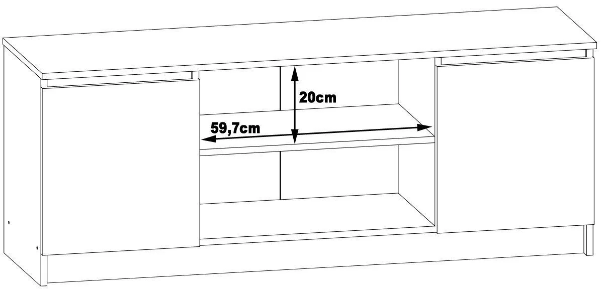 Käytännöllinen TV-taso RTV erottuu viehätysvoimallaan, se on ainutlaatuinen yksityiskohta kotiisi. TV-taso on käytännöllinen ja tyylikäs sekä loistava valinta ihmisille, jotka etsivät toimivia huonekaluja moderniin sisustukseen. Kirjat, elektroniikka ja muut tavarat säilyvät käden ulottuvilla, tilavalla 2-ovisella hyllyllä on riittävästi tilaa tavaroillesi. Tasolle mahtuu television lisäksi muitakin sisustusesineitä. Se on valmistettu kestävästä lastulevystä.
