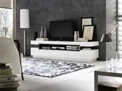 Kaikki nämä modernien huonekalujen ominaisuudet vahvistavat sen tosiasian, että tämän tyylin tuotteet ovat yksinkertaisia ja samalla erittäin yleisiä. Joten ne on helppo sijoittaa kaikenkokoisiin huoneisiin. TV-teline Laura, valkoinen kiiltävä/harmaa pitää niistä, jotka haluavat luoda minimalistisen ja tilavan tilan, jossa on kunnollinen ja raikas luonto.