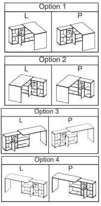 - Pöydänosa voidaan asentaa hyllyn vasemmalle tai oikealle puolelle;