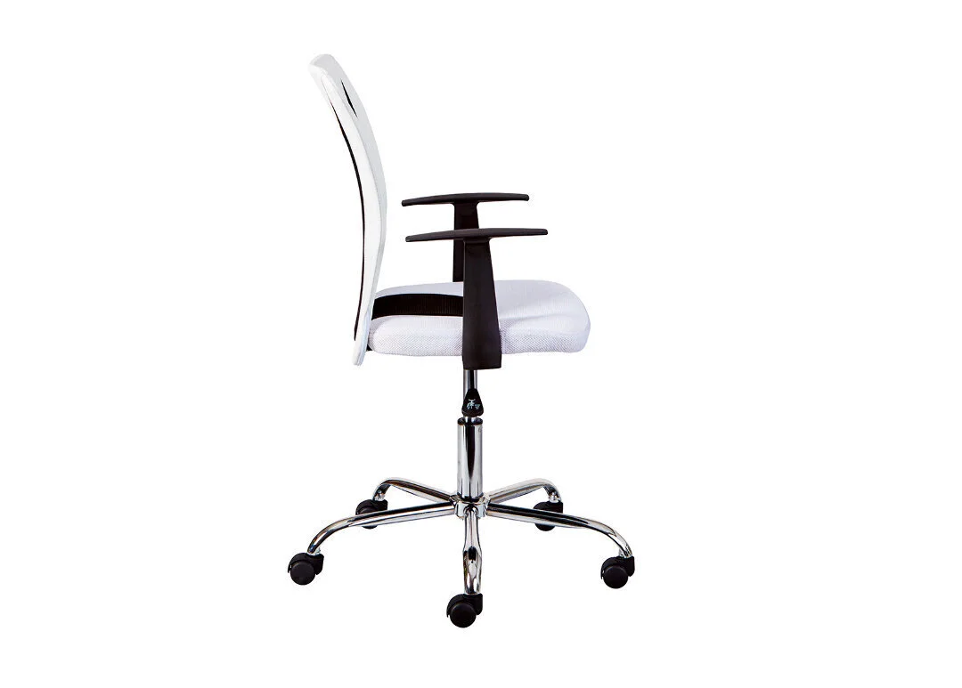 This luxury office swivel chair featuring contemporary mesh design is very comfortable thanks to an ergonomically shaped seat and backrest. The comfortable, mesh seat, upholstered with a mix of PU materials, goes together well with the mesh backrest, designed to provide optimum support around the pelvis. Mix of PU materials. The „Gaslift Lant Class III“ gas pressure spring has been certified by TÜV. Metal base, 5 prongs, chrome-plated, featuring castors. (at maximum): 100 kg.