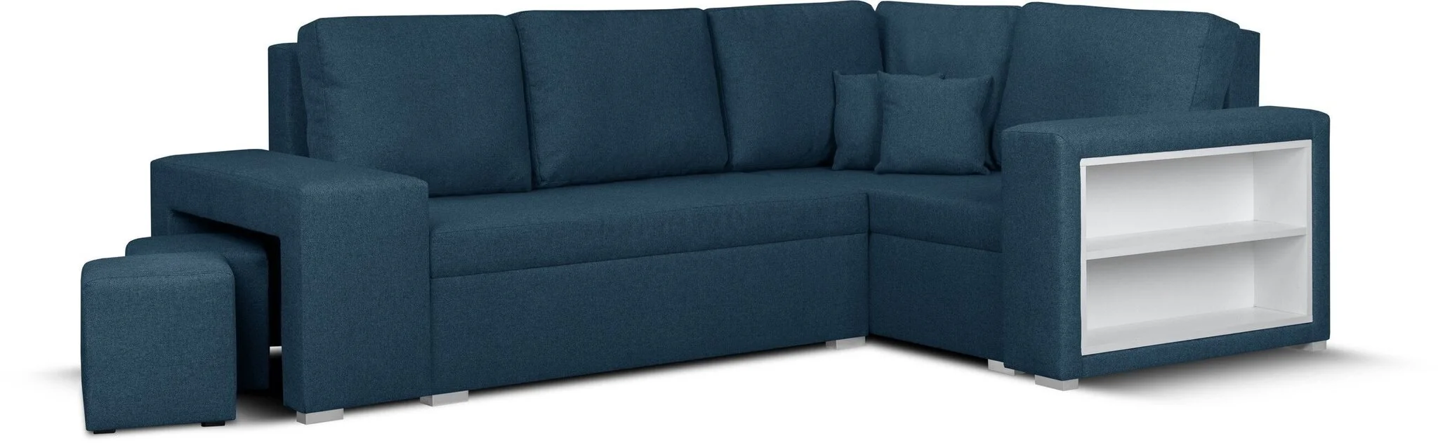 Yksi tämän huonekalun ilmeisimmistä eduista on tilansäästö: niin kauan kuin huonekaluja ei pureta, se vie huomattavasti vähemmän tilaa. Tästä syystä tällä toiminnolla varustetut huonekalut valitsevat useimmiten ne, joiden on laskettava huolellisesti jokainen vapaa tuuma. Universaali pehmeä kulmasohva Bellezza Milo3, tummansininen sopii erinomaisesti myös suurempiin tiloihin: joten siellä on enemmän tilaa muille yksityiskohdille. Useimmissa tämän tyyppisissä huonekaluissa on liinavaatelaatikko sisällä – näin tavaroiden säilytysongelma ratkeaa taas.