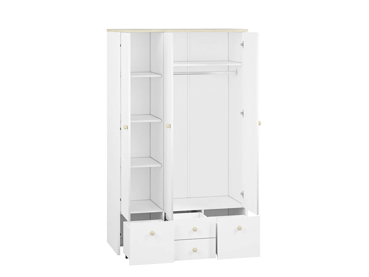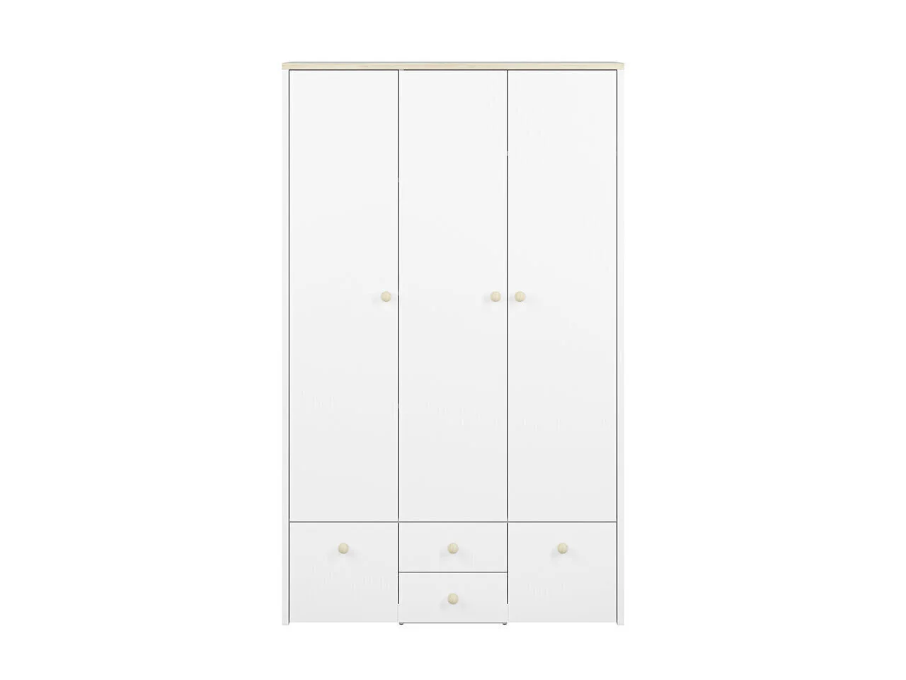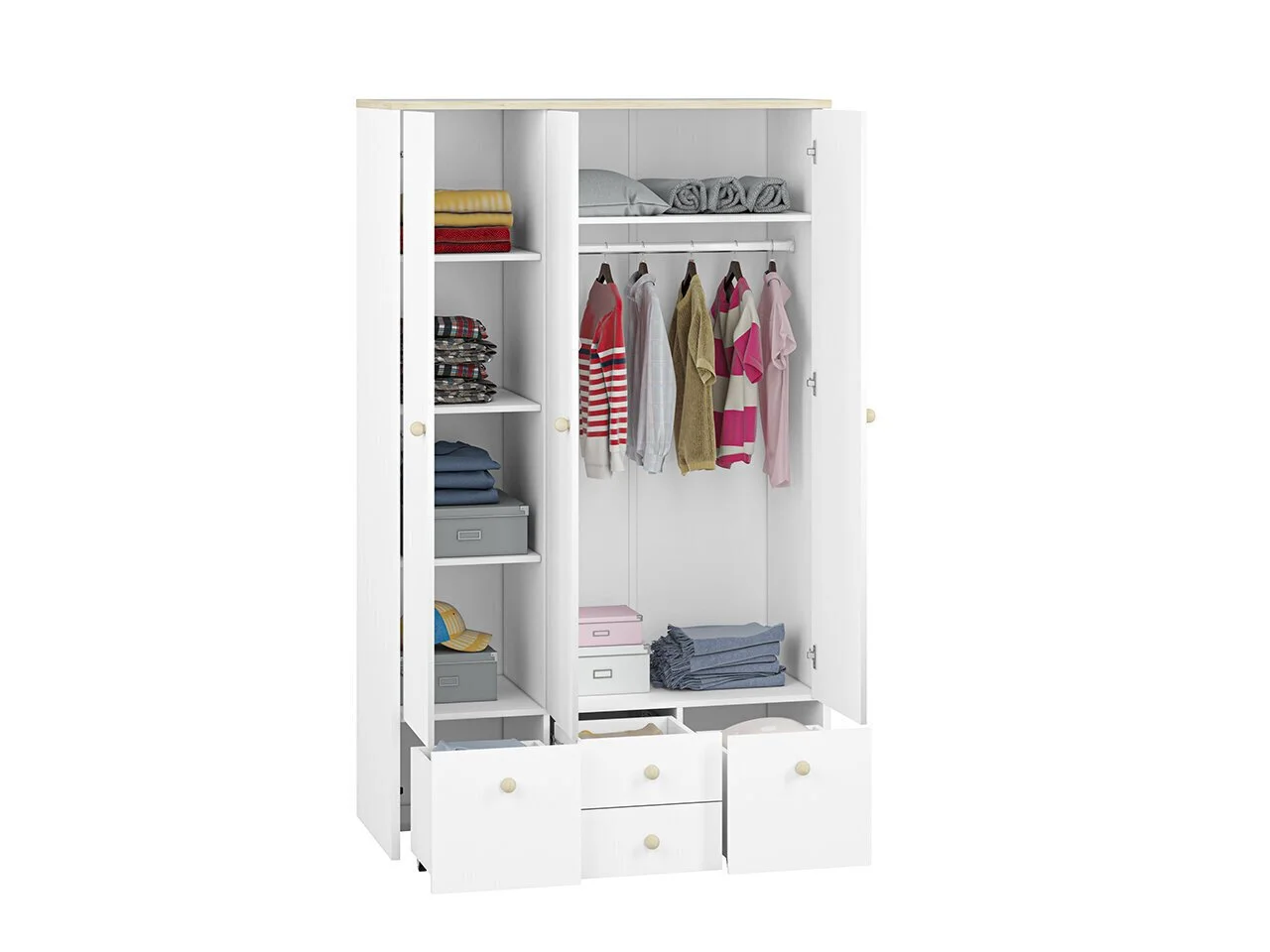 - moderni vaatekaappi, jossa on kolme saranoitua ovea ja neljä laatikkoa;