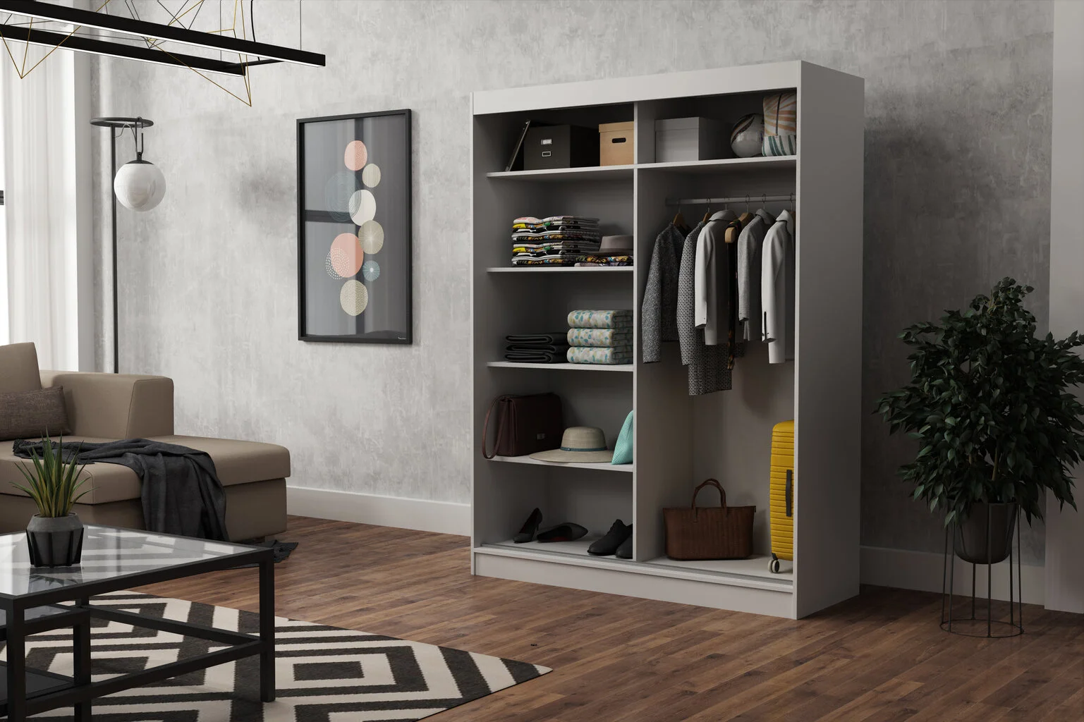 Klassisissa kaksiovisissa kaapeissa on sarana- ja liukuovet, jotka eivät eroa tavallisista sisäovista. Jos sinulla on tilaa saranaovelle, tämä voi olla loistava valinta! Se on suosittu, ajaton valinta. Itse asiassa useimmat ihmiset ajattelevat, että saranoitu ovi on ainoa vaihtoehto, mutta myös liukukaappiovi on mahdollinen. Kaksiovisissa kaapeissa, joissa on saranoidut ovet, tulee olla riittävästi tilaa saranoidun oven avautumista varten. Viimeinen asia, jonka haluat, on, että pystyt avaamaan kaapin oven vain neljänneksen matkasta läheisen seinän tai kiinteän huonekalun takia. Jos sinulla ei ole tarpeeksi tilaa saranoidulle ovelle, niin liukuovi voi olla loistava valinta sinulle! Kaksiovisissa kaapeissa näet myös sen kaiken sisällön heti kaapin avaamisen jälkeen, toisin kuin sivuille liukuovilla varustetut kaapit, mutta liukukaappiovet ”säästävät” huonetilaasi.