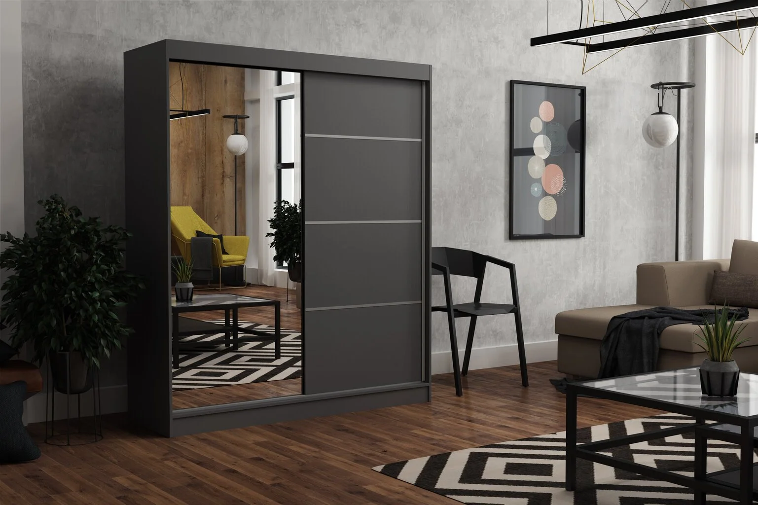 Kaikki nämä modernien huonekalujen ominaisuudet vahvistavat sen tosiasian, että tämän tyylin tuotteet ovat yksinkertaisia ja samalla erittäin yleisiä. Joten ne on helppo sijoittaa kaikenkokoisiin huoneisiin. Vaatekaappi NORE Tom 180, tummanharmaa pitää niistä, jotka haluavat luoda minimalistisen ja tilavan tilan, jossa on kunnollinen ja raikas luonto.