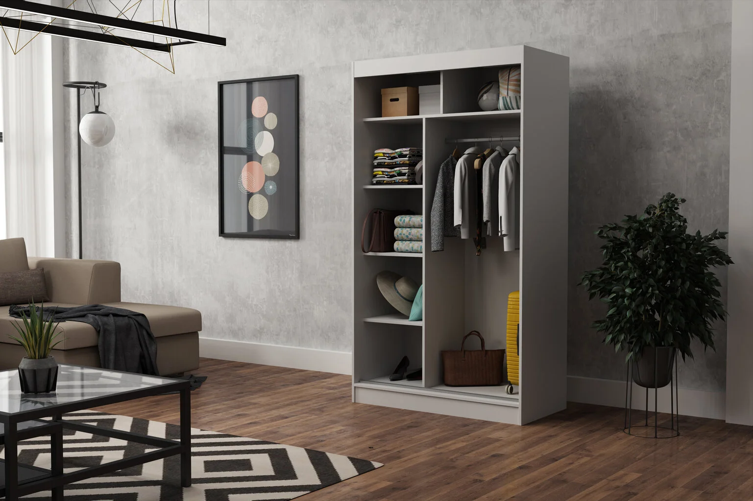 Klassisissa kaksiovisissa kaapeissa on sarana- ja liukuovet, jotka eivät eroa tavallisista sisäovista. Jos sinulla on tilaa saranaovelle, tämä voi olla loistava valinta! Se on suosittu, ajaton valinta. Itse asiassa useimmat ihmiset ajattelevat, että saranoitu ovi on ainoa vaihtoehto, mutta myös liukukaappiovi on mahdollinen. Kaksiovisissa kaapeissa, joissa on saranoidut ovet, tulee olla riittävästi tilaa saranoidun oven avautumista varten. Viimeinen asia, jonka haluat, on, että pystyt avaamaan kaapin oven vain neljänneksen matkasta läheisen seinän tai kiinteän huonekalun takia. Jos sinulla ei ole tarpeeksi tilaa saranoidulle ovelle, niin liukuovi voi olla loistava valinta sinulle! Kaksiovisissa kaapeissa näet myös sen kaiken sisällön heti kaapin avaamisen jälkeen, toisin kuin sivuille liukuovilla varustetut kaapit, mutta liukukaappiovet ”säästävät” huonetilaasi.