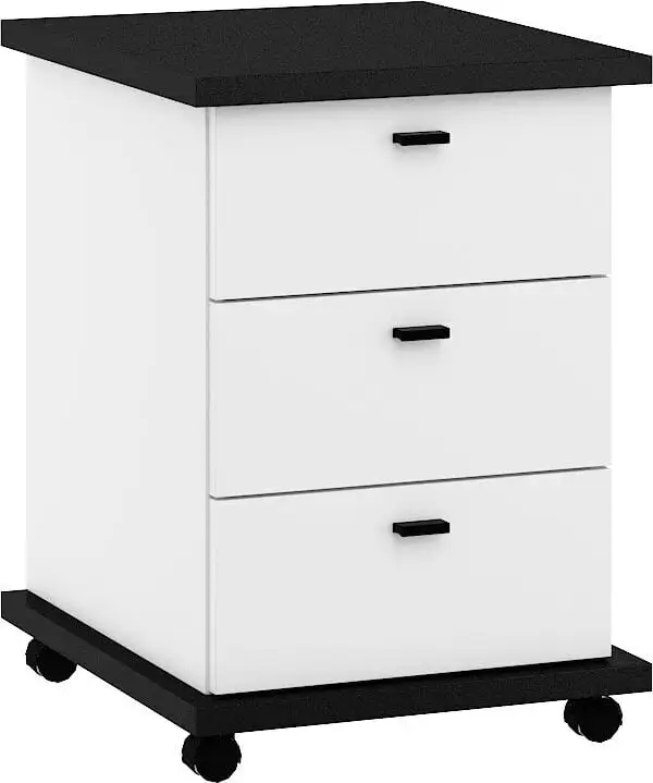 - Modernisti muotoiltu kaappi kolme laatikkoa pyörillä