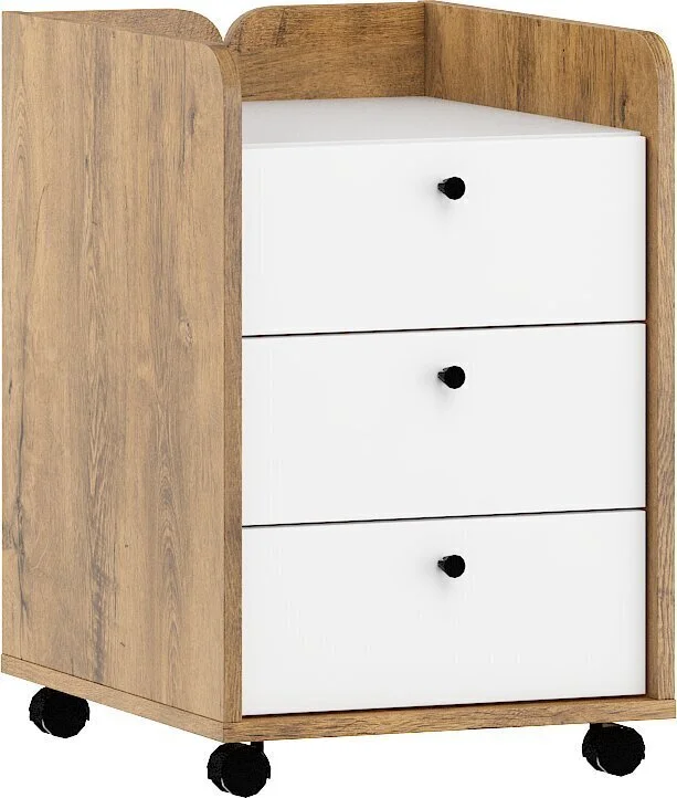 - Moderni kaappi pyörillä kolmella laatikolla;