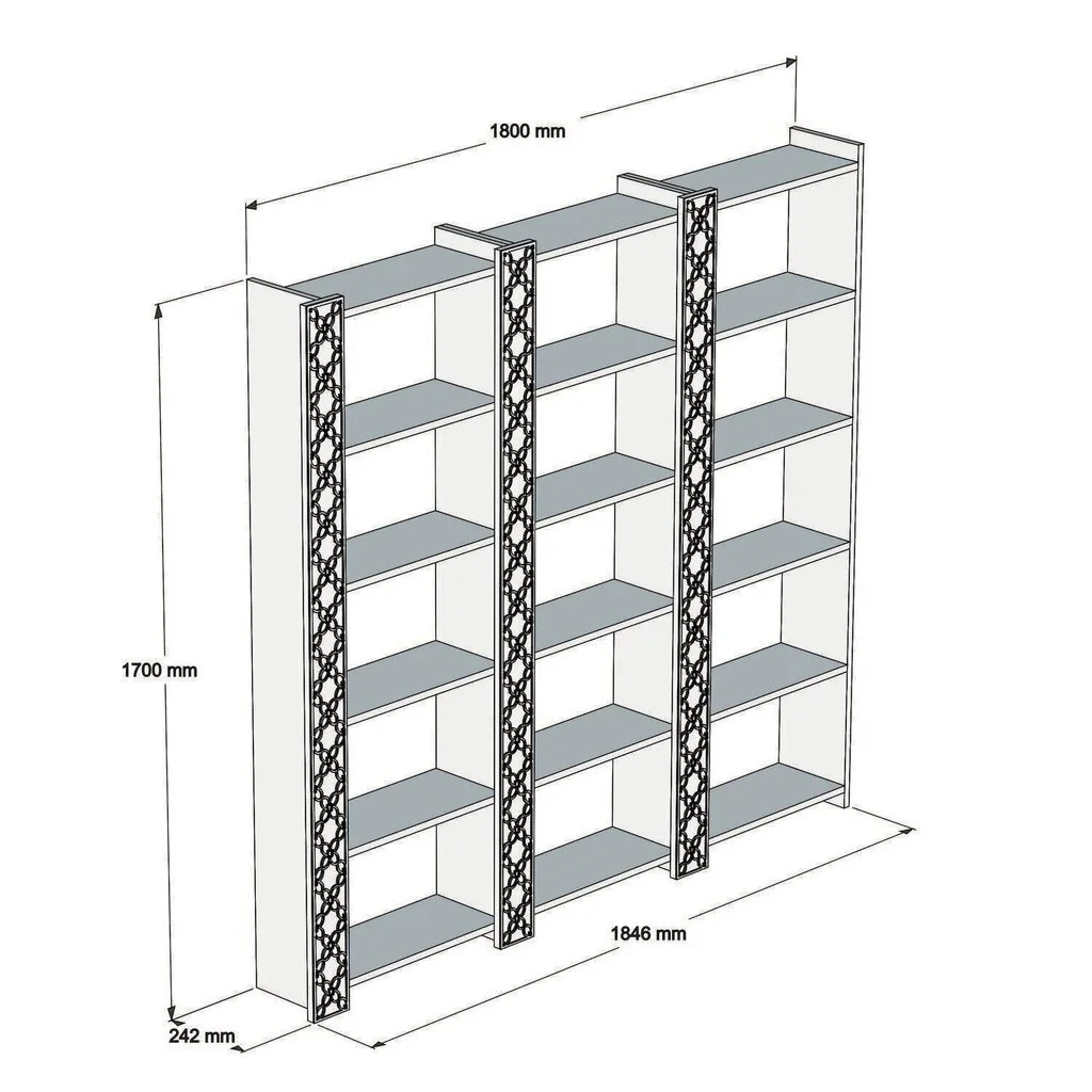 - Jokainen hylly: 5 osaa, 6 hyllyä;