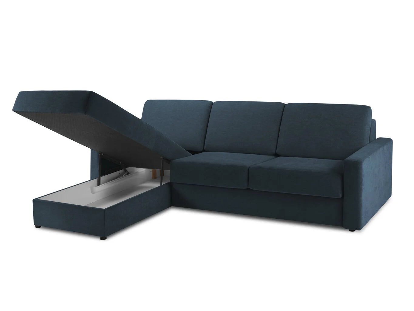 Yksi tämän huonekalun ilmeisimmistä eduista on tilansäästö: niin kauan kuin huonekaluja ei pureta, se vie huomattavasti vähemmän tilaa. Tästä syystä tällä toiminnolla varustetut huonekalut valitsevat useimmiten ne, joiden on laskettava huolellisesti jokainen vapaa tuuma. Pehmeä kulmasohva Windsor&Co Portia M, sininen sopii erinomaisesti myös suurempiin tiloihin: joten siellä on enemmän tilaa muille yksityiskohdille. Useimmissa tämän tyyppisissä huonekaluissa on liinavaatelaatikko sisällä – näin tavaroiden säilytysongelma ratkeaa taas.