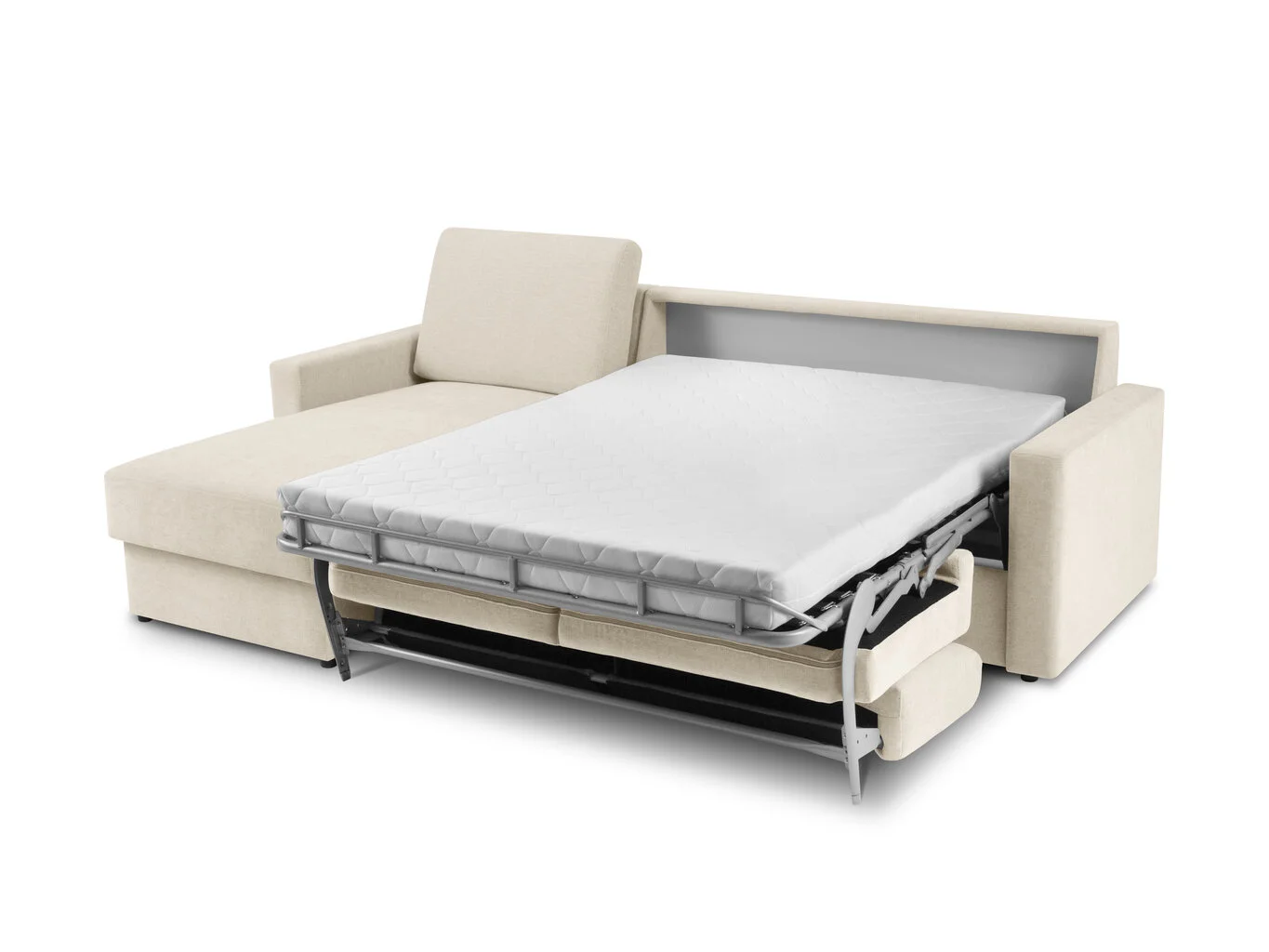 Yksi tämän huonekalun ilmeisimmistä eduista on tilansäästö: niin kauan kuin huonekaluja ei pureta, se vie huomattavasti vähemmän tilaa. Tästä syystä tällä toiminnolla varustetut huonekalut valitsevat useimmiten ne, joiden on laskettava huolellisesti jokainen vapaa tuuma. Pehmeä kulmasohva Windsor&Co Portia S, beige sopii erinomaisesti myös suurempiin tiloihin: joten siellä on enemmän tilaa muille yksityiskohdille. Useimmissa tämän tyyppisissä huonekaluissa on liinavaatelaatikko sisällä – näin tavaroiden säilytysongelma ratkeaa taas.