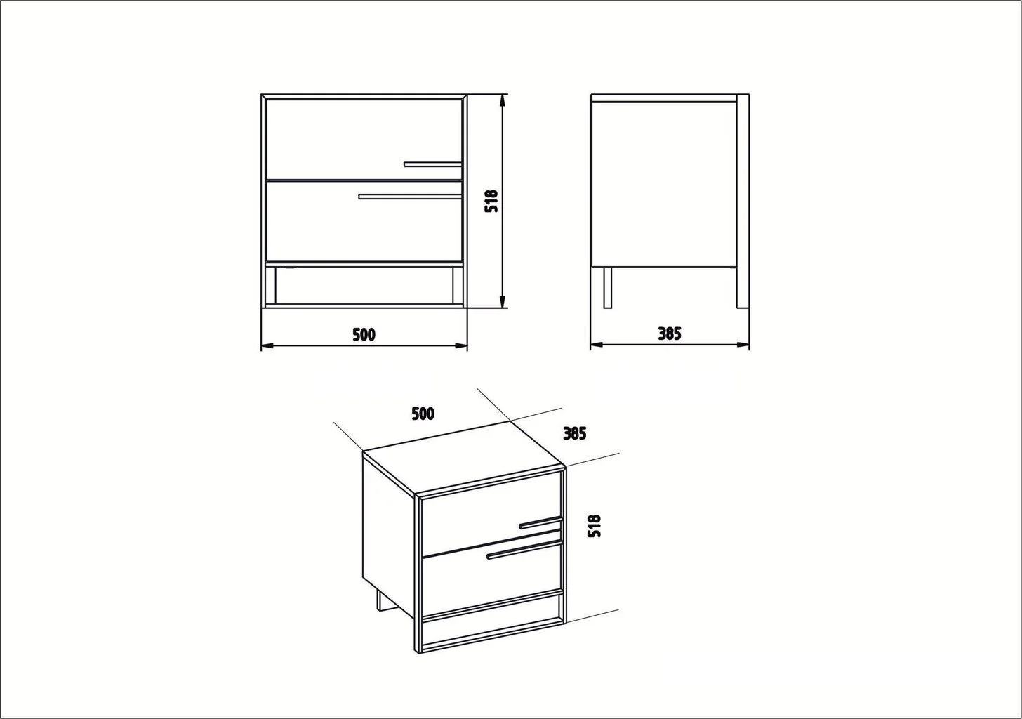 - Pöydän mitat: leveys 50 cm, syvyys 51,8 cm, korkeus 38,5 cm;