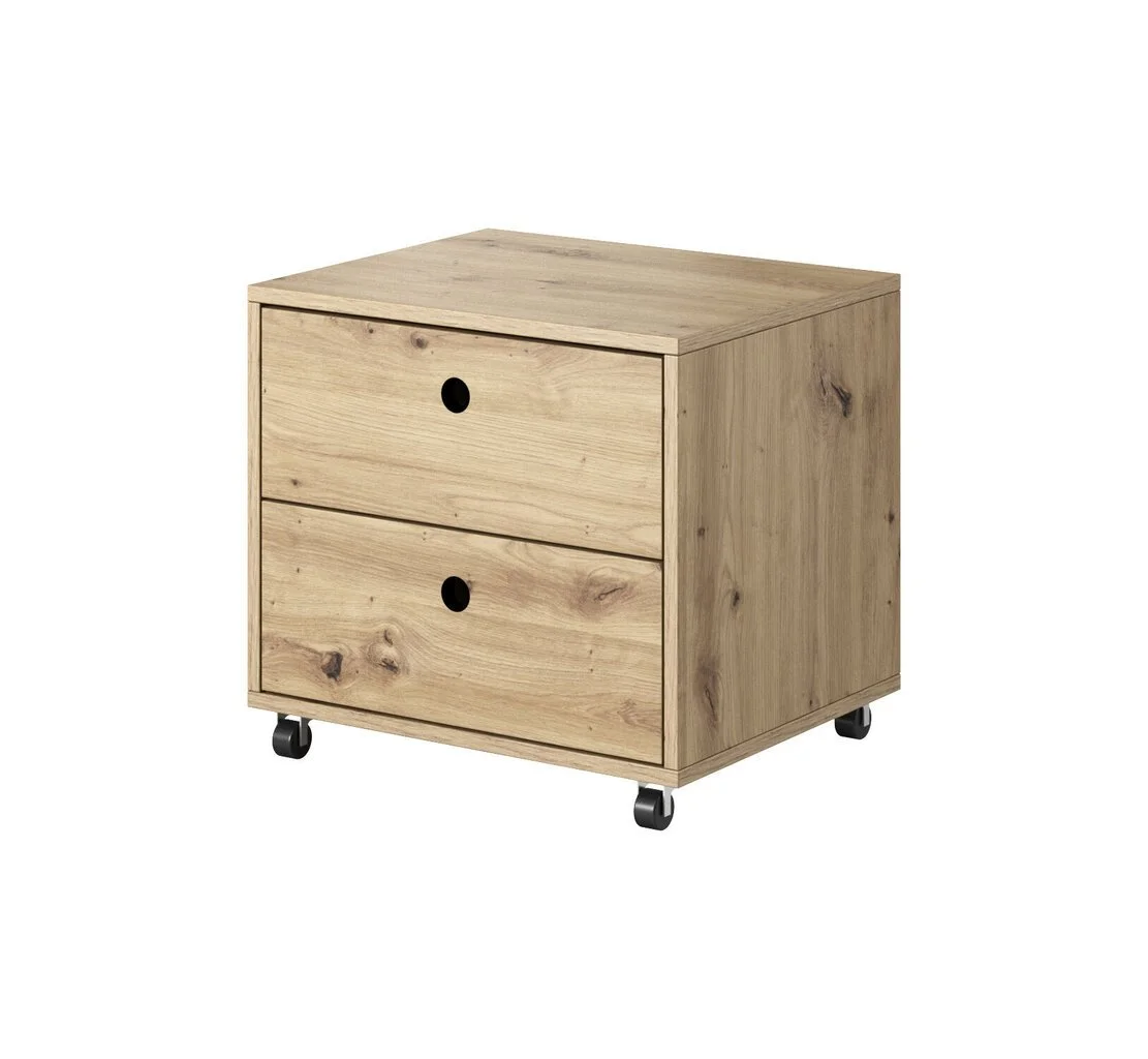 - -Pyörillä varustettu yöpöytä, jossa on 2 laatikkoa;